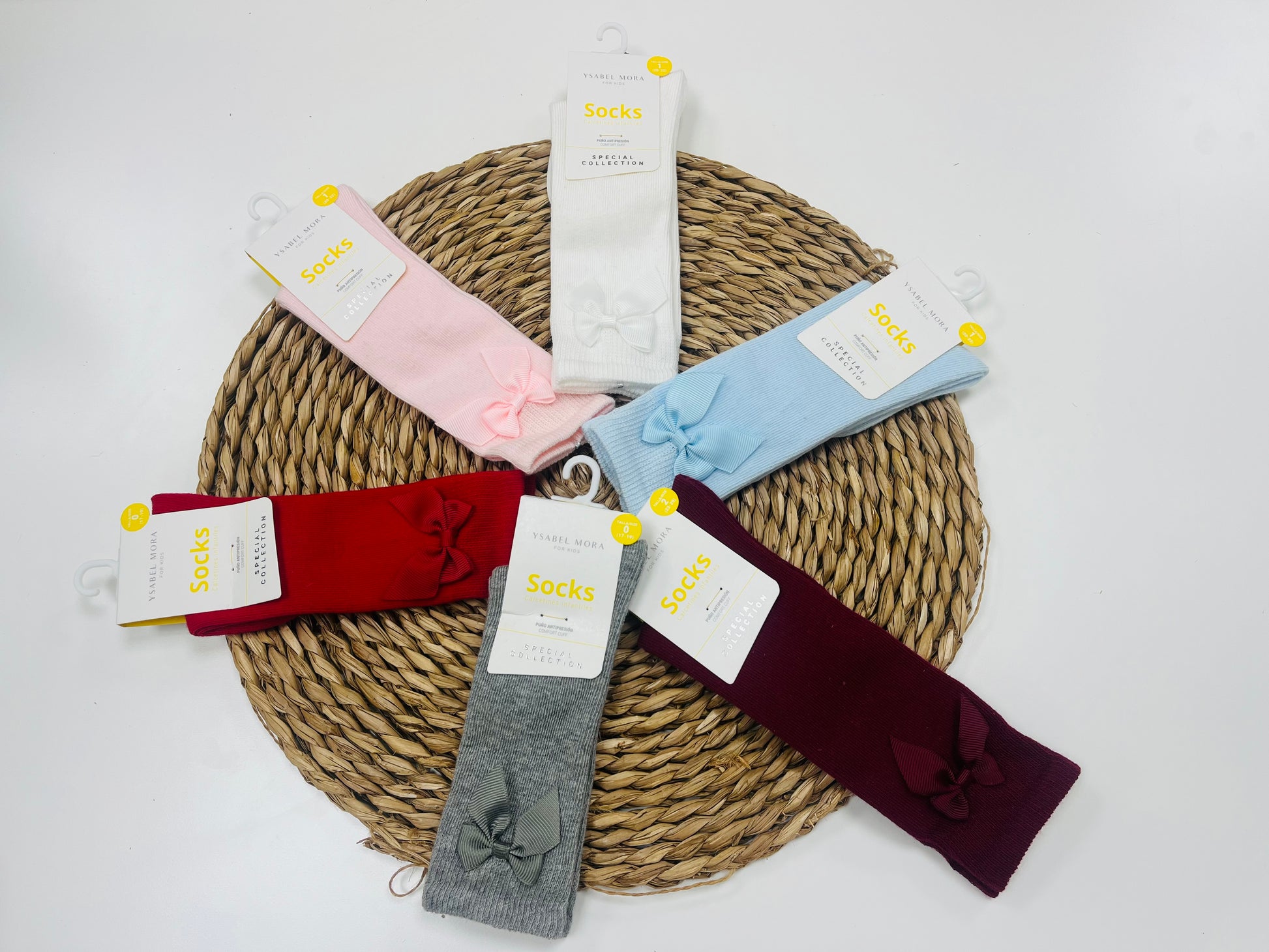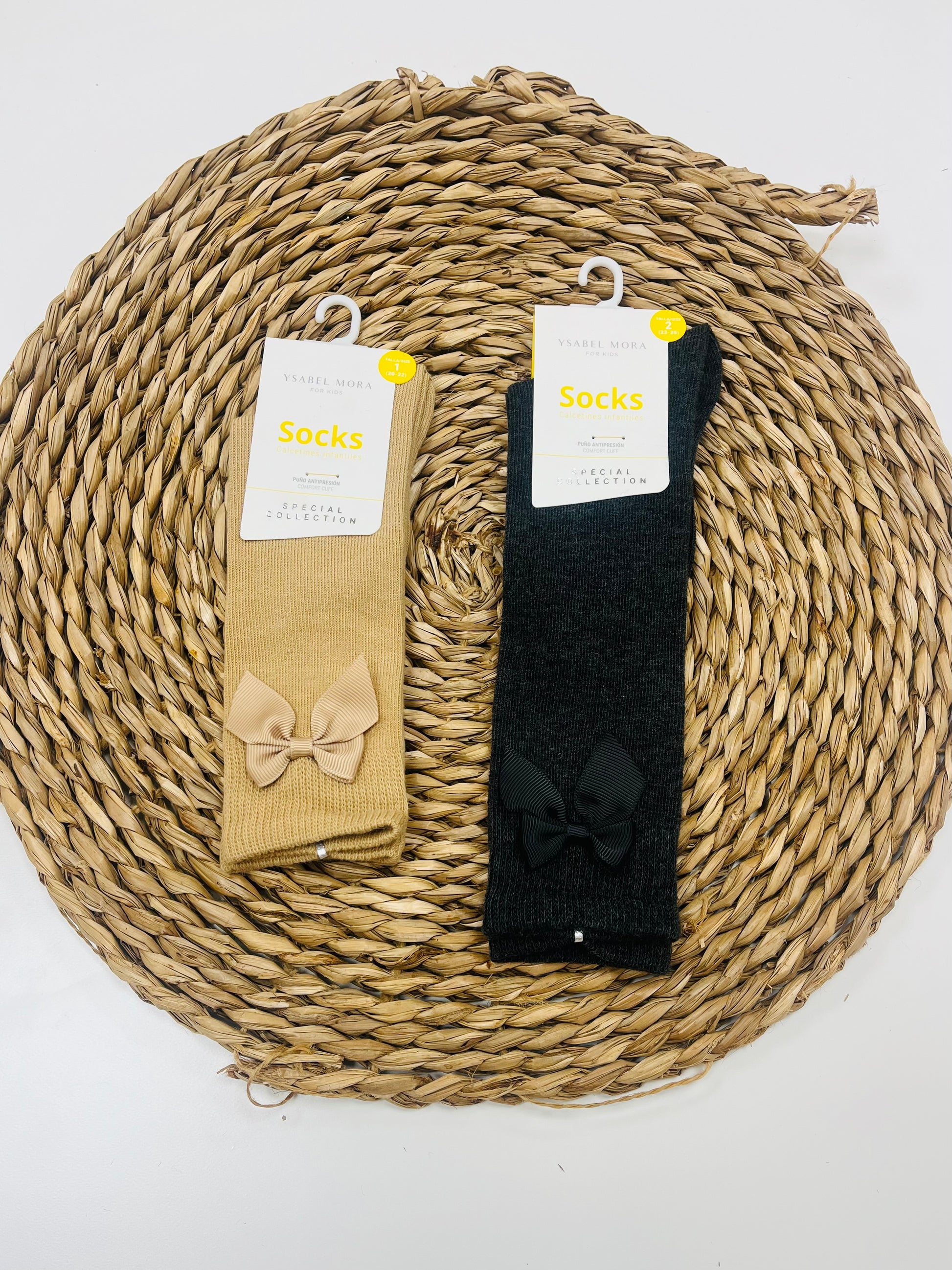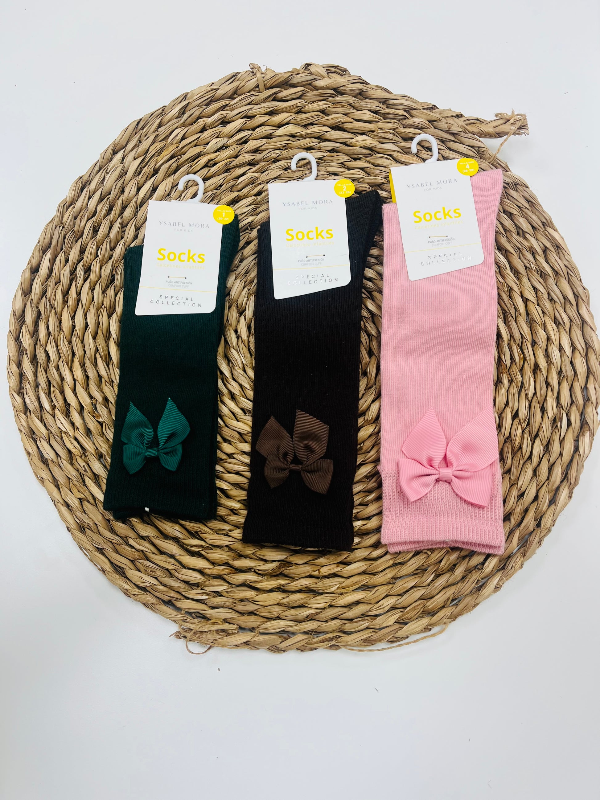 Calcetín alto con lazo de raso.