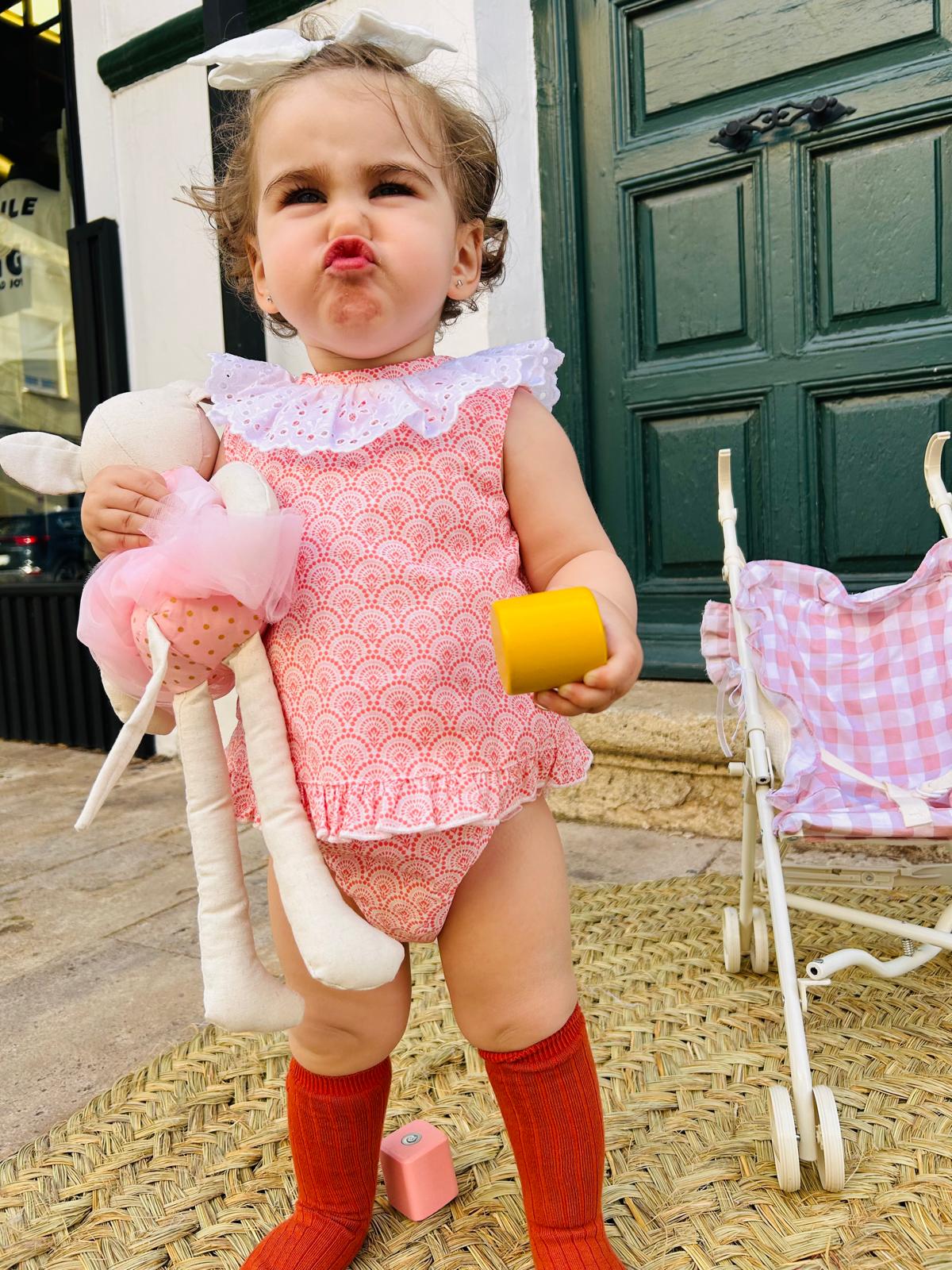 Conjunto compuesto por : camisa con cierre trasero de botones y braguita cubre pañal