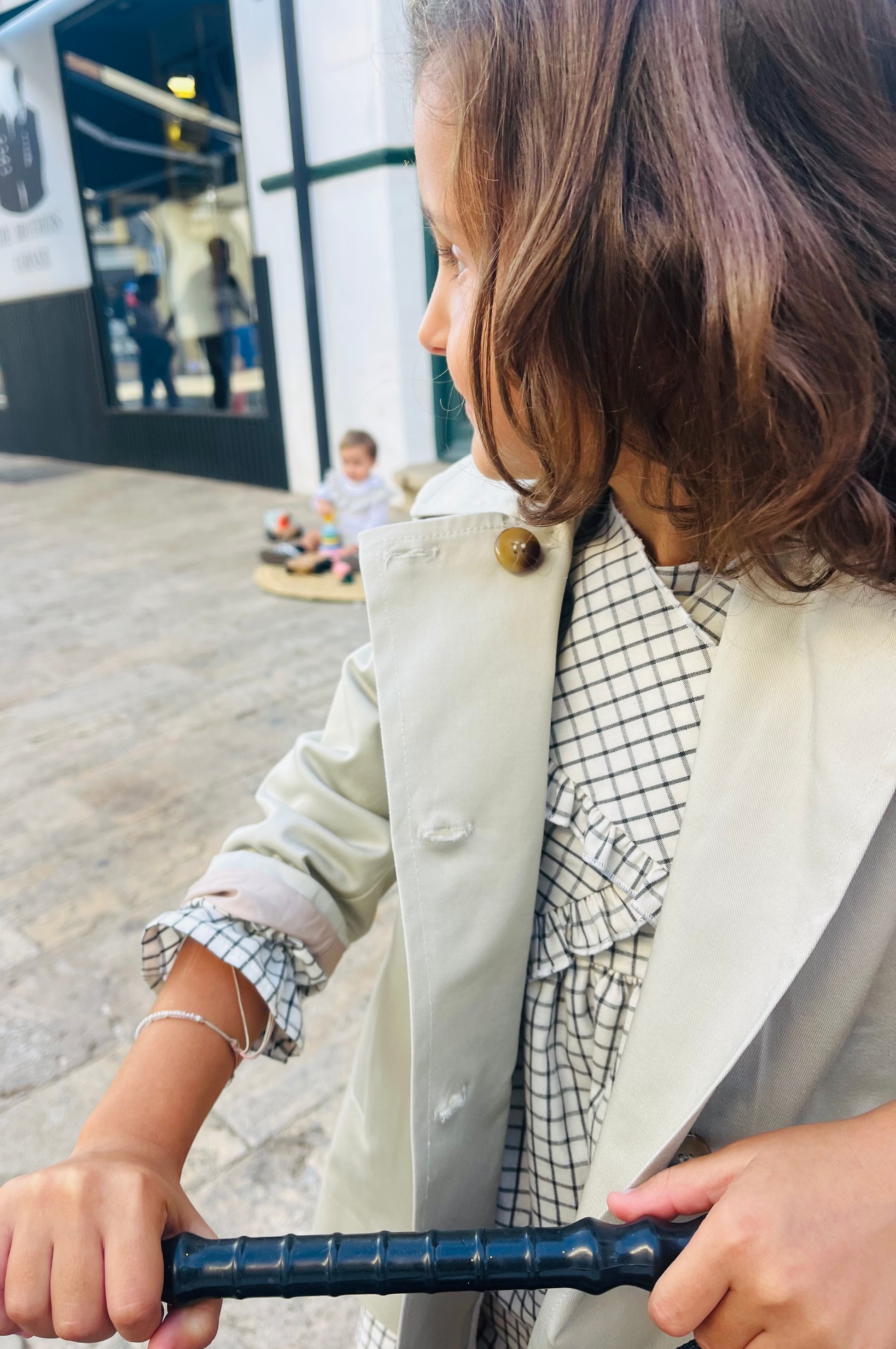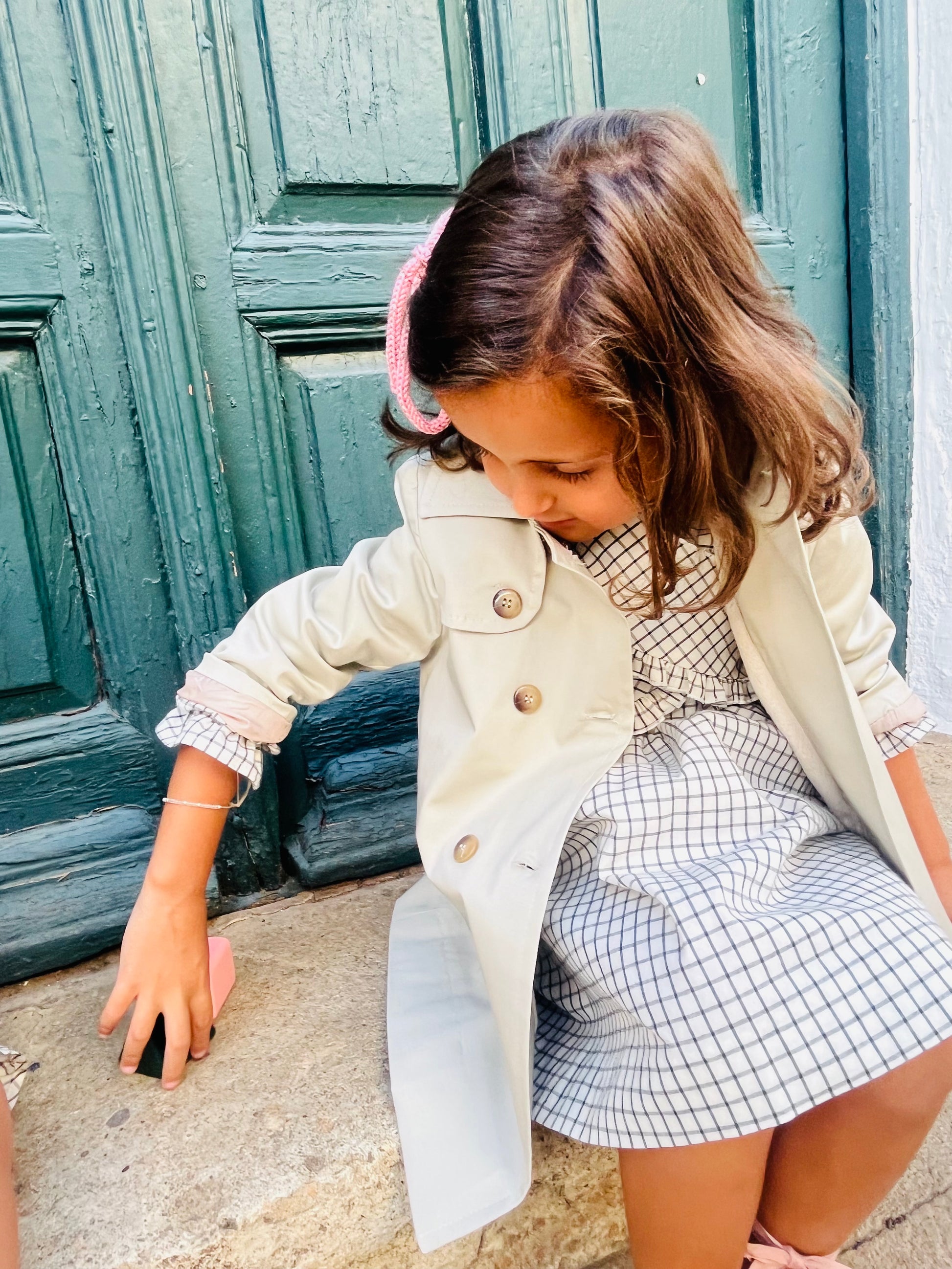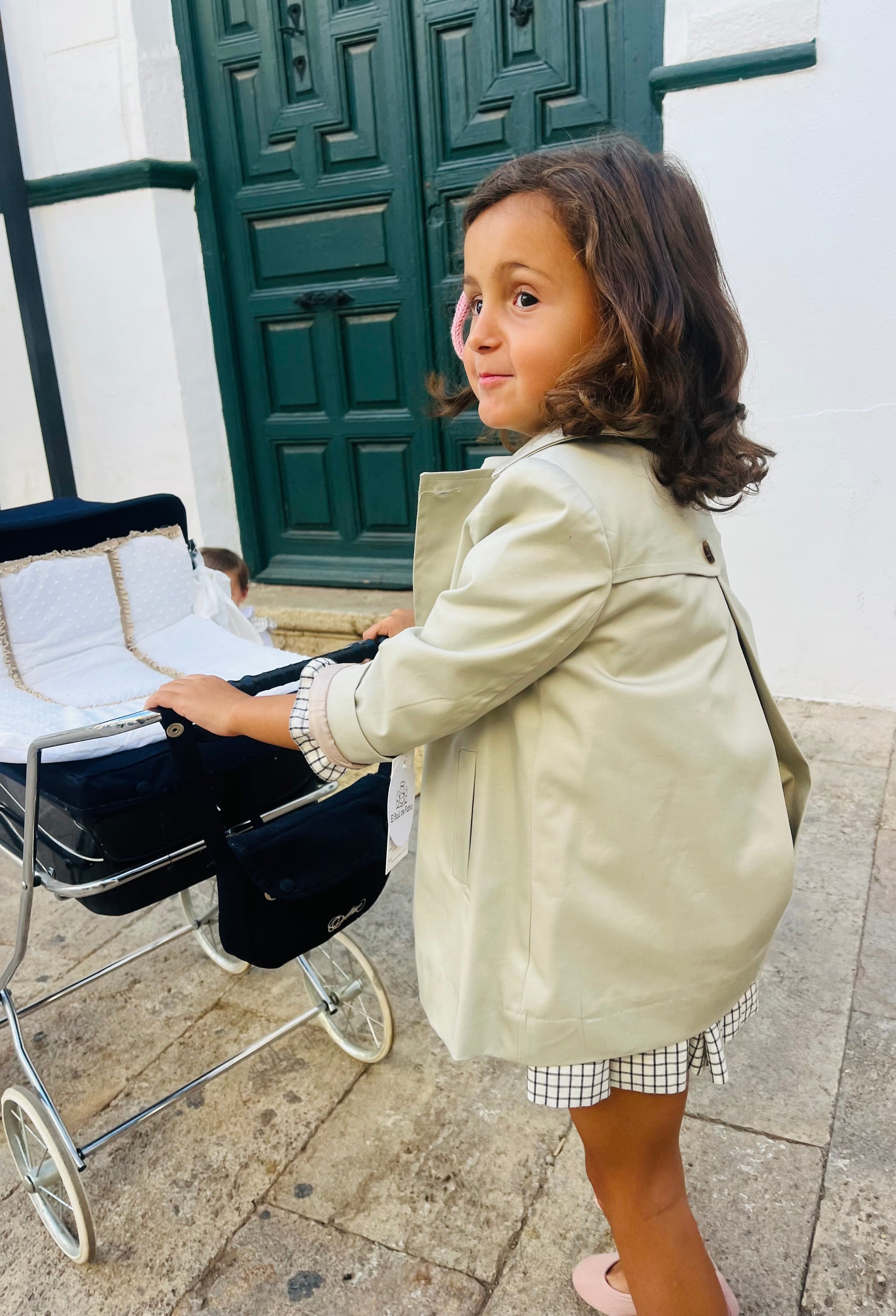 Gabardina Chloe, cierre con botones en carey, forrada con pelito por dentro.
