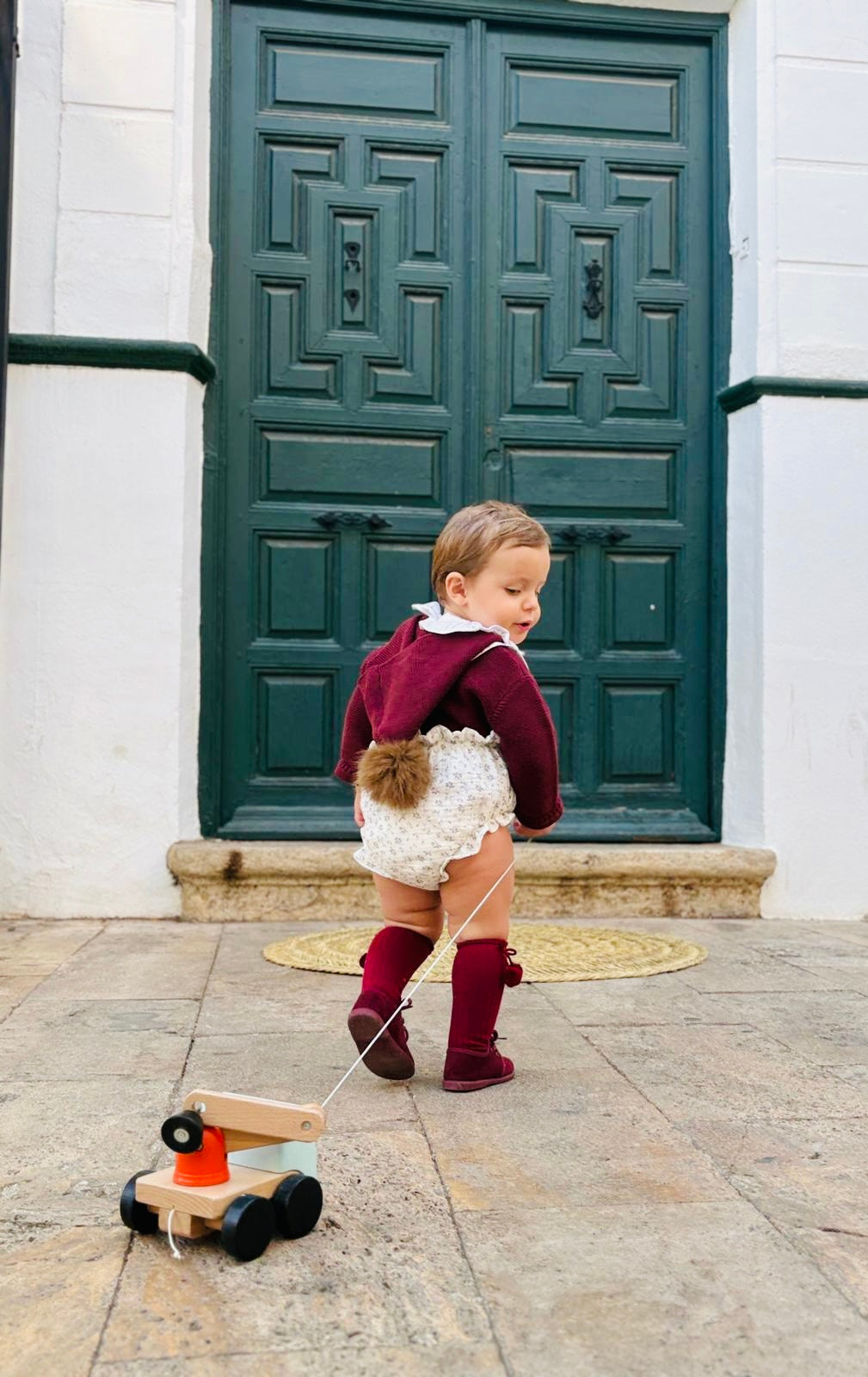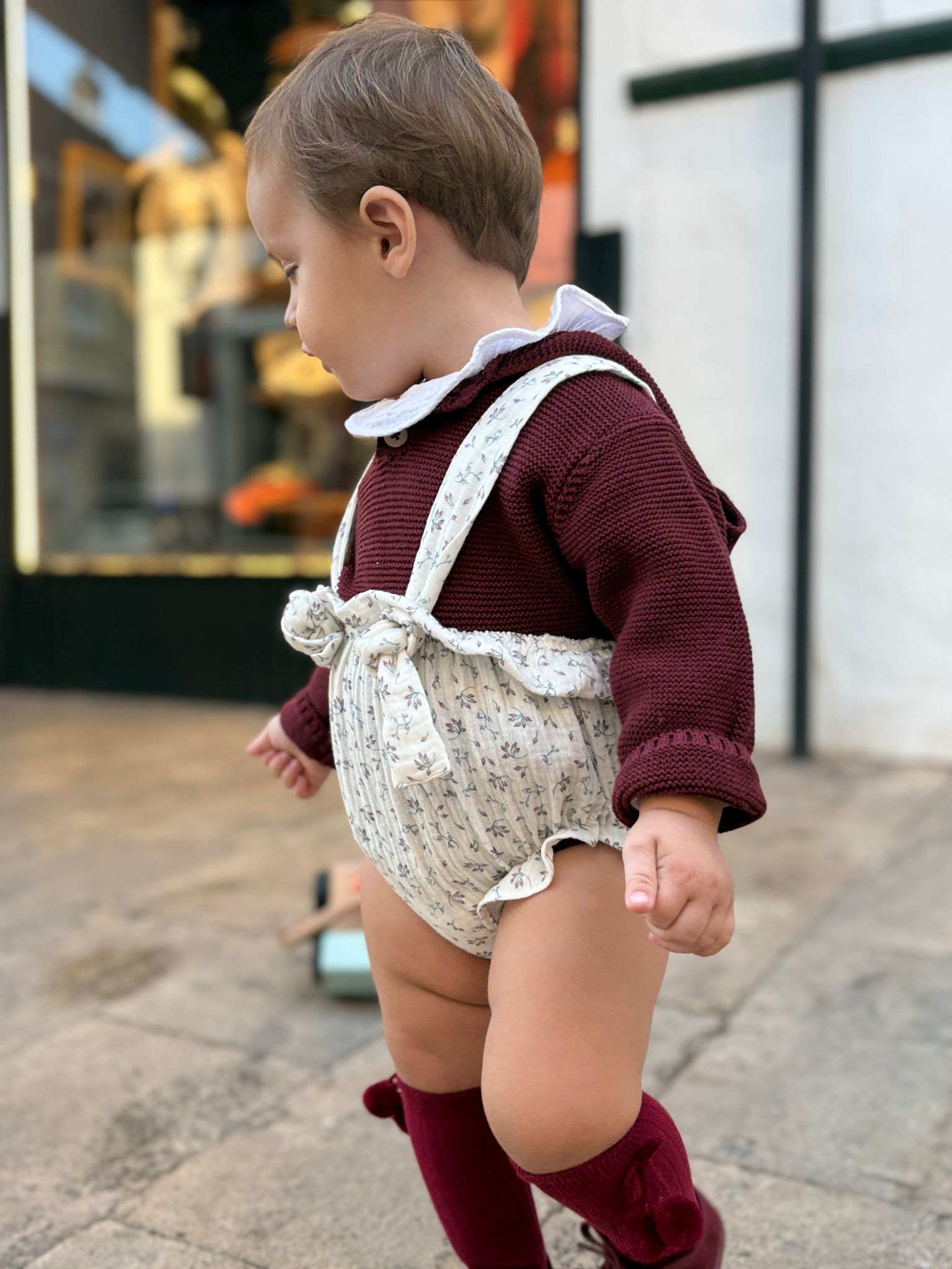 Cubre pañal con tirantes ajustables y goma en la cintura.