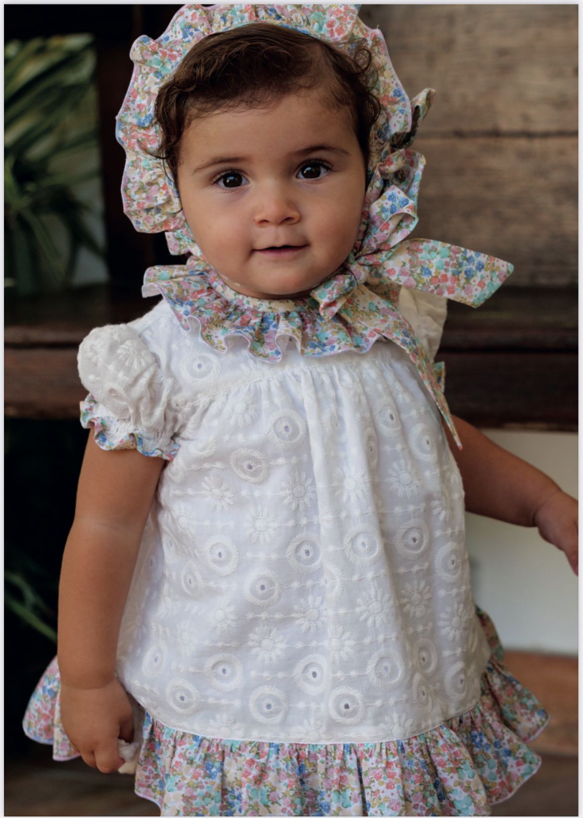 Jesusito/Vestido flores , ideal para eventos , compuesto por tres piezas , vestido , cubre pañal y capota.