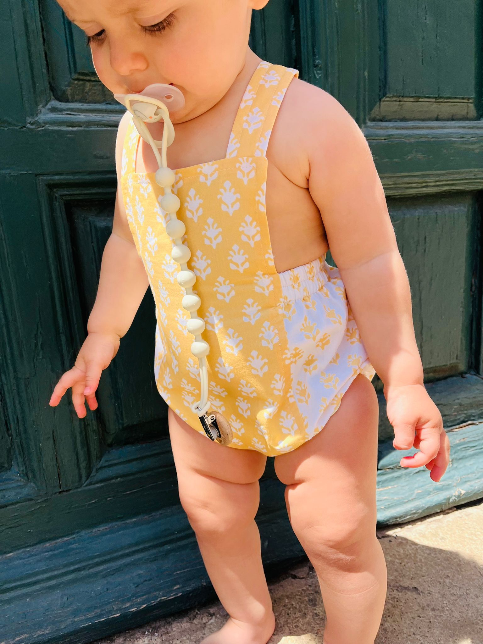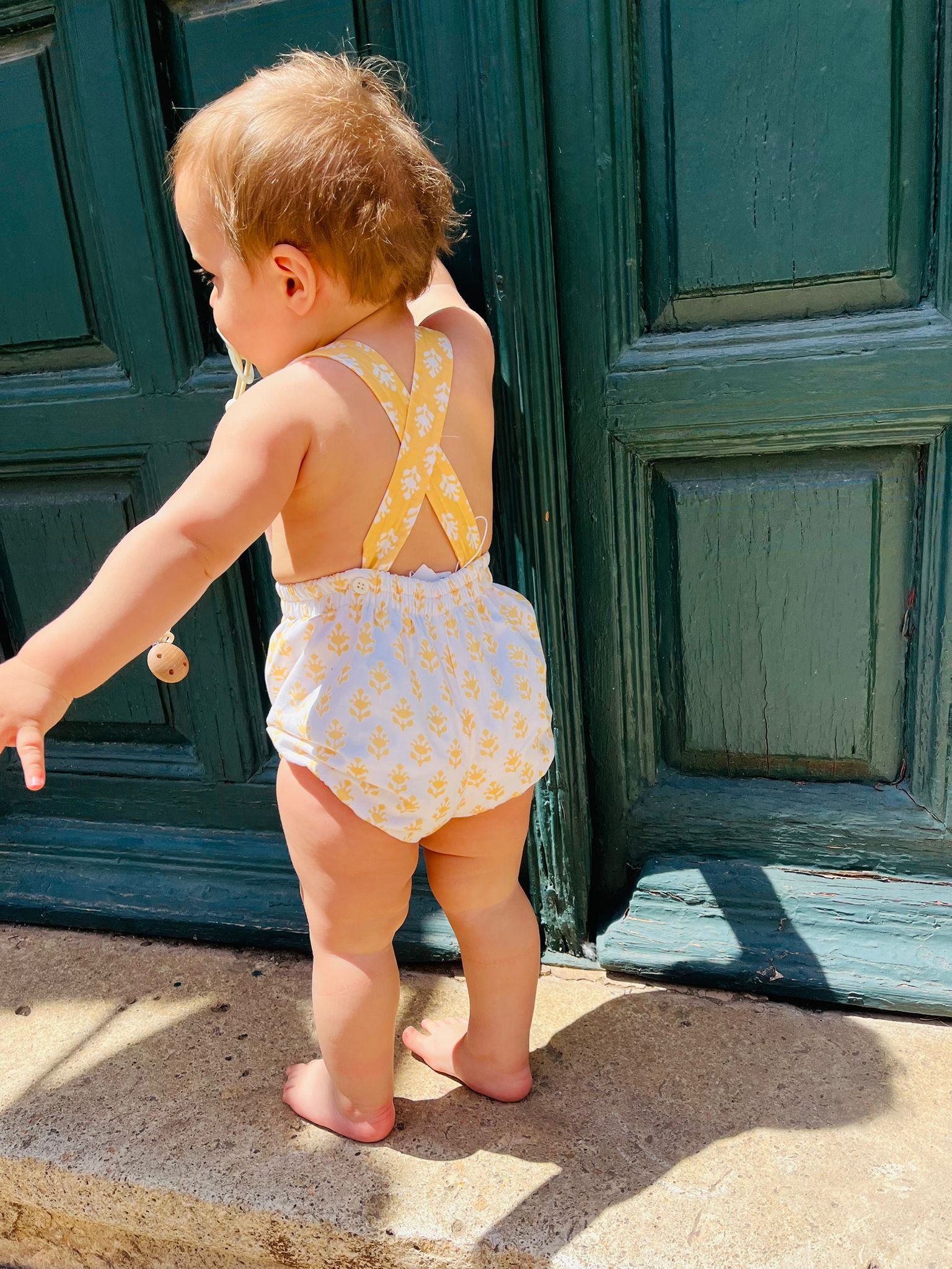 Peto ibiza UNISEX , de algodón , con tirantes ajustables y goma en la parte trasera.